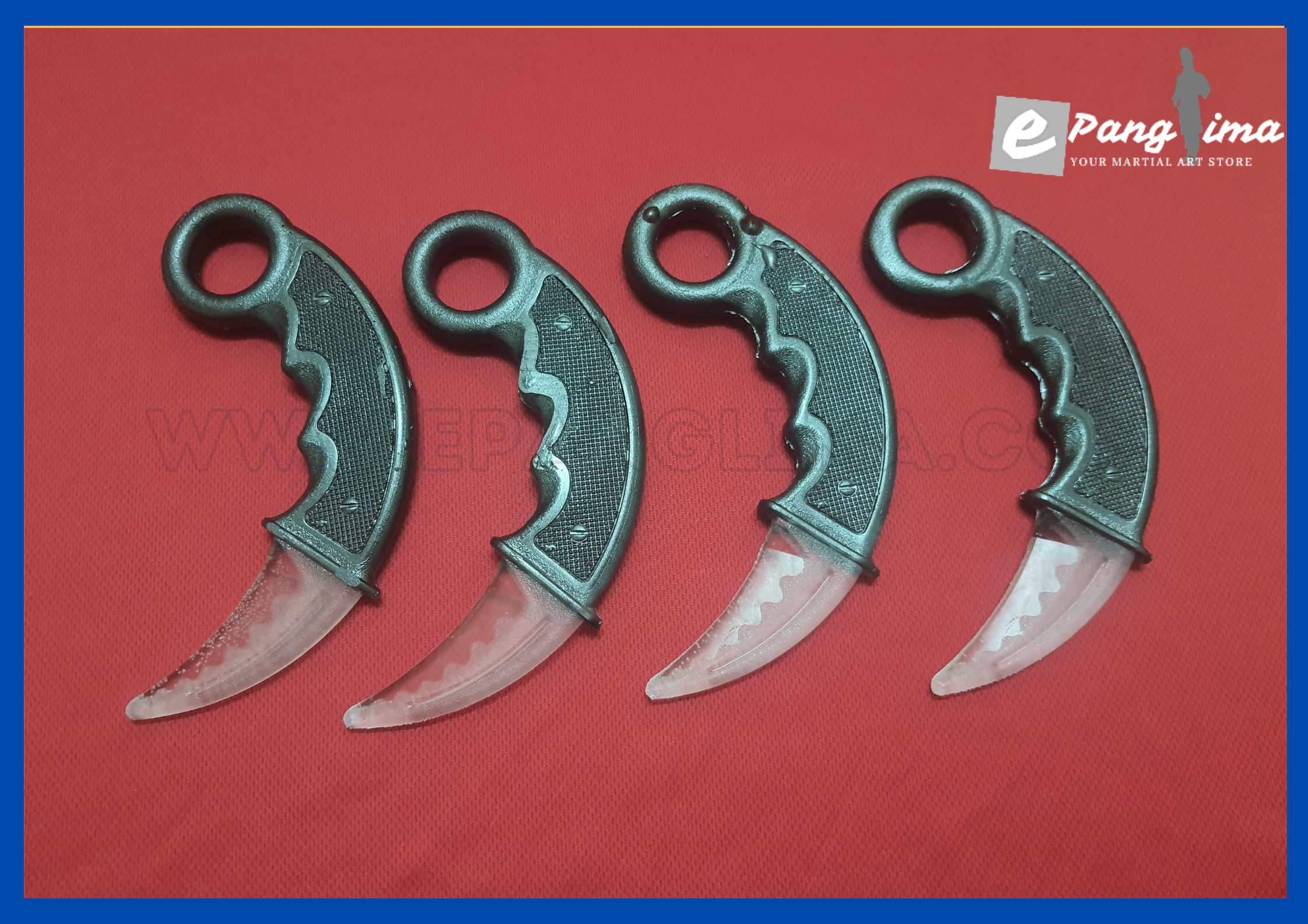 Kerambit Latihan ( Plastik )Posted on February 13, 2021February 13, 2021 By admin Sepasang kerambit latihan dari bahan plastik. Kerambit ini tidak tajam dan tidak berbahaya. Sesuai untuk digunakan dalam latihan silat. Harga sepasang ialah RM60 termasuk pos.